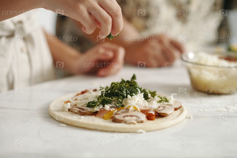 Девушка, готовящая домашнюю пиццу дома