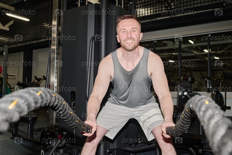 Спортсмен сжигает жир в профессиональном тренажерном зале
