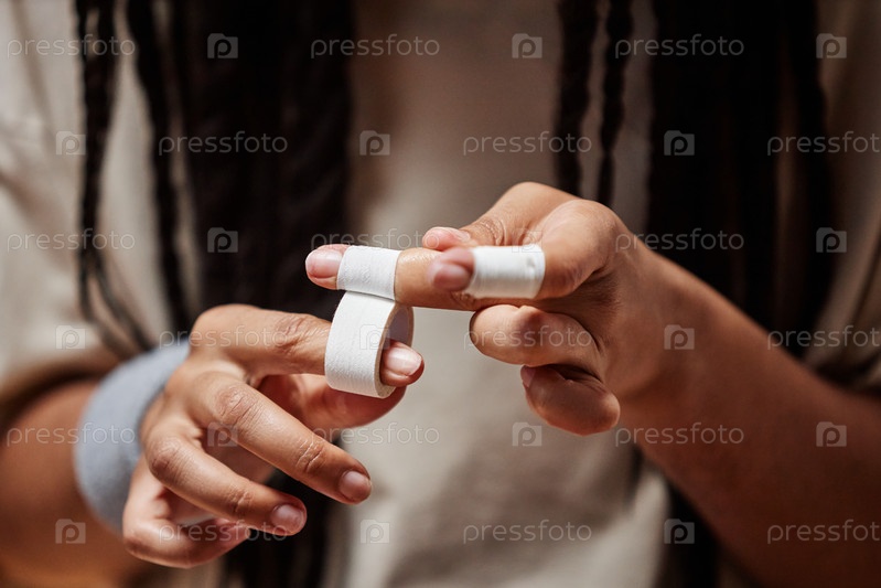 Баскетболист обертывает пальцы лентой