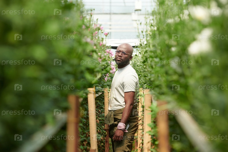 Минимальный чернокожий человек, ходящий в цветах