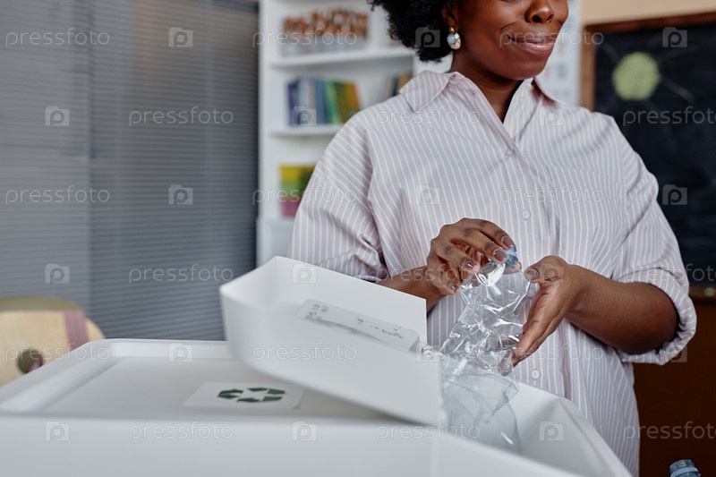 Женщина в классе о сортировке перерабатываемых веществ