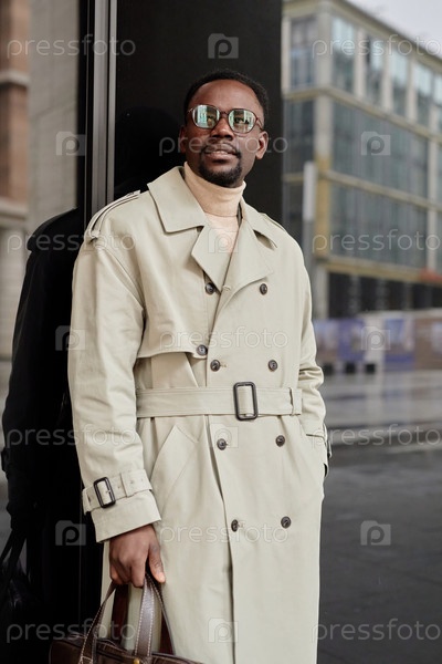 Портрет модного мужчины, носящего плащ и солнцезащитные очки