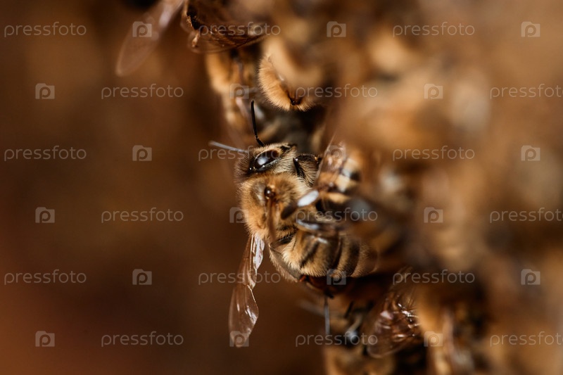 Медоносная пчела о Сидя на соломе в колонии пчел