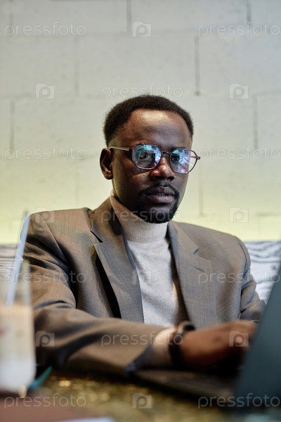 Концентрация афроамериканского мужчины, носящего очки