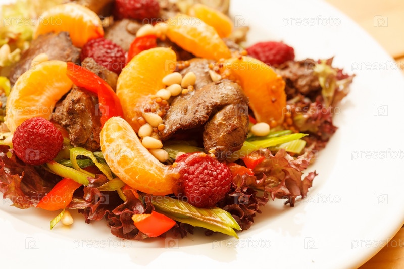 Куриная печень с фруктами