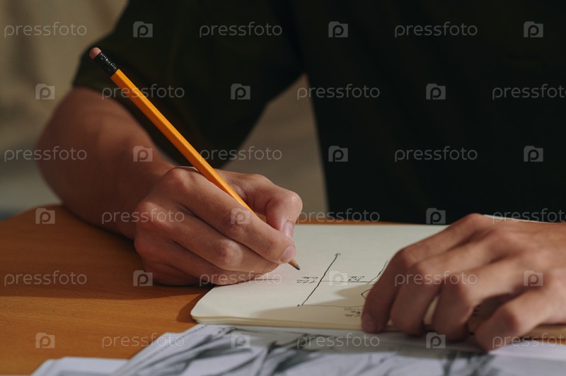 Дизайнер моды рисует в книге копий