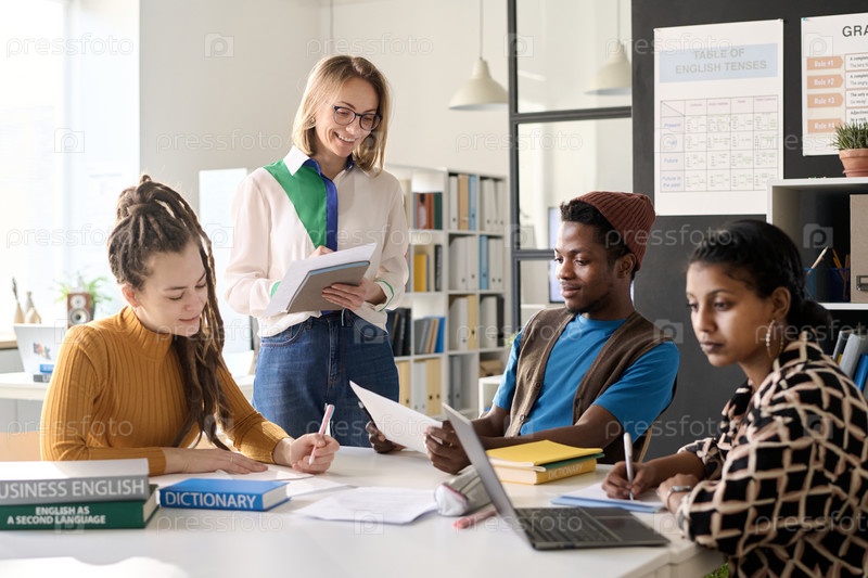 Учительница в классе с группой студентов