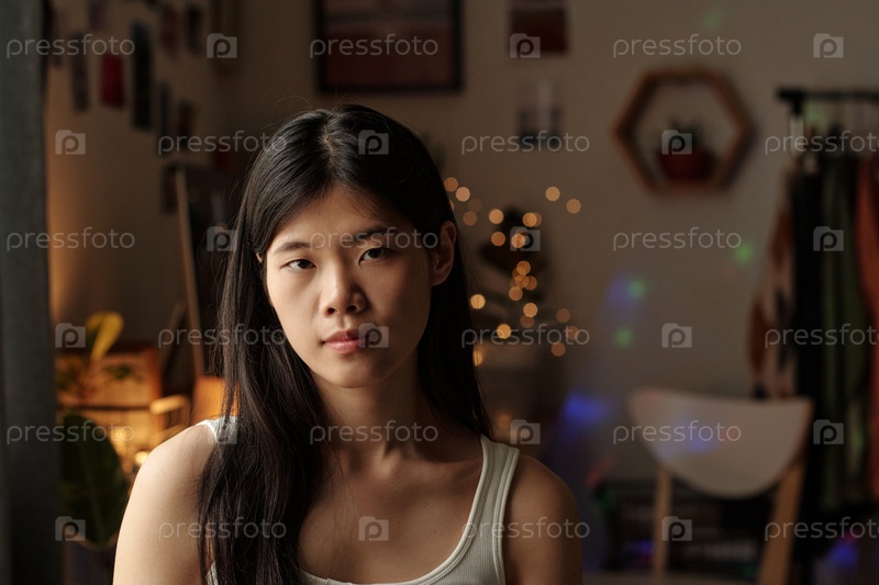 Красивая девушка с длинными прямыми темными волосами