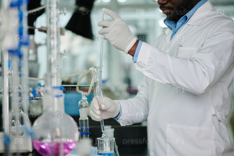 Человек, использующий стеклянную посуду во время эксперимента