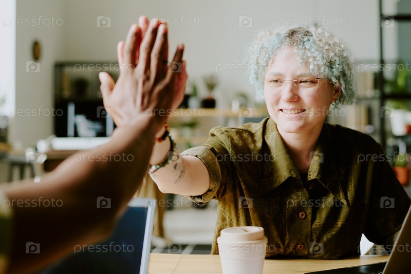 Успешные коллеги делают высокую пятерку