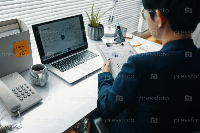 Деловая женщина, изучающая финансовую графику на своем рабочем месте