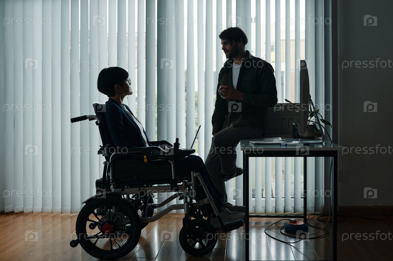 Мужчина разговаривает со своим коллегой-инвалидом