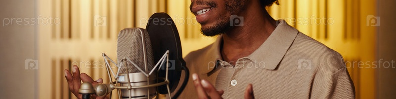 Афро вокалист поет песню в микрофоне