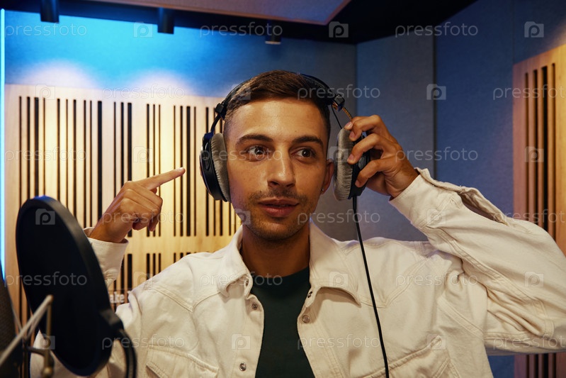 Молодой человек записывает песню в студии
