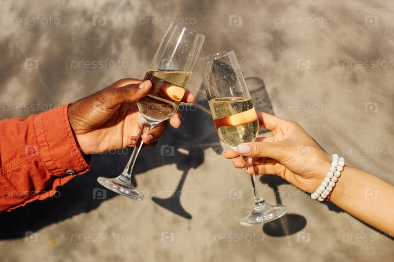 Празднование дружбы с поднятыми бокалами шампанского