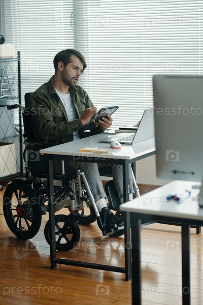 Менеджер с инвалидностью, работающий онлайн на своем рабочем месте