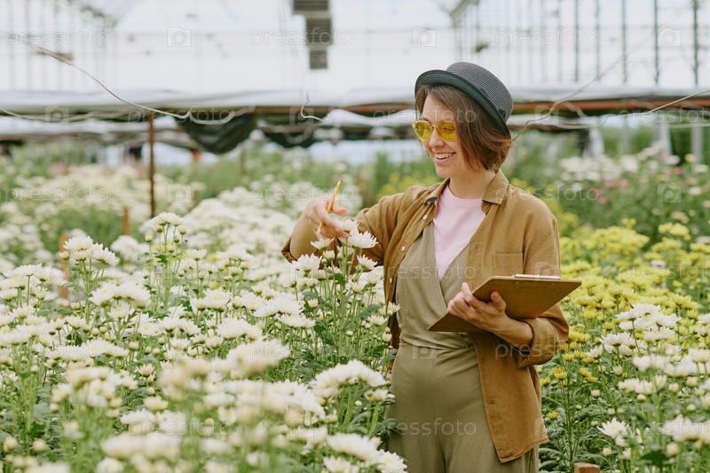 Женщина, работающая в цветочной теплице
