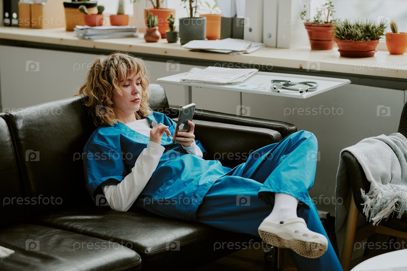 Фокусированная медсестра серфирует по Интернету