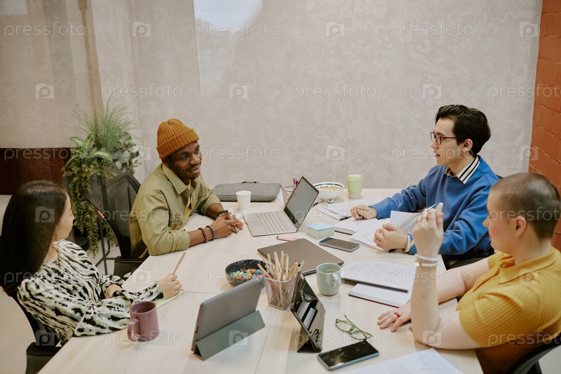 Молодая команда обсуждает современную бизнес-стратегию