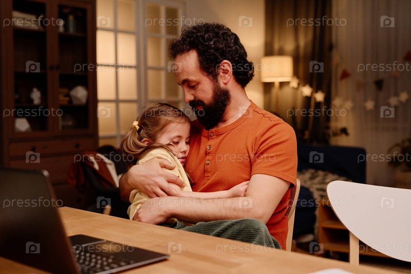 Утешение ребенка на домашнем столе в поздние вечерние часы