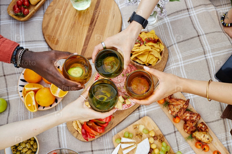 Празднование дружбы с напитками и закусками