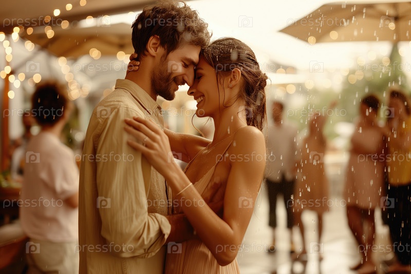 Празднование любви под струнными огнями на вечеринке в открытом воздухе