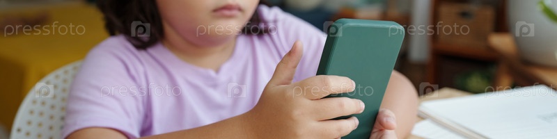 Ребенок использует мобильный телефон во время учебы