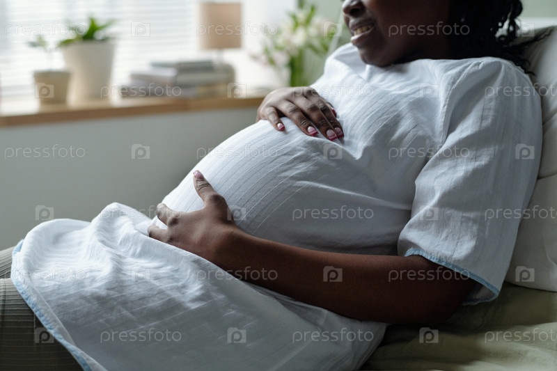 Ждущая мать держит беременный живот сидя на диване