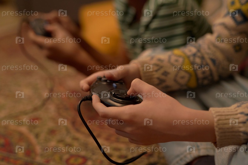 Ближайшее изображение рук, держащих ретро-контроллер видеоигр