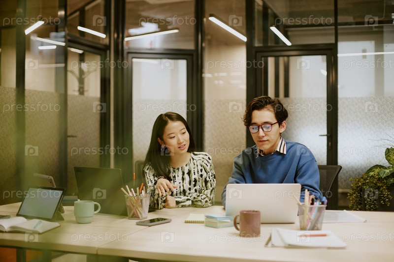 Бирациальный мужчина и женщина работают вместе над проектом