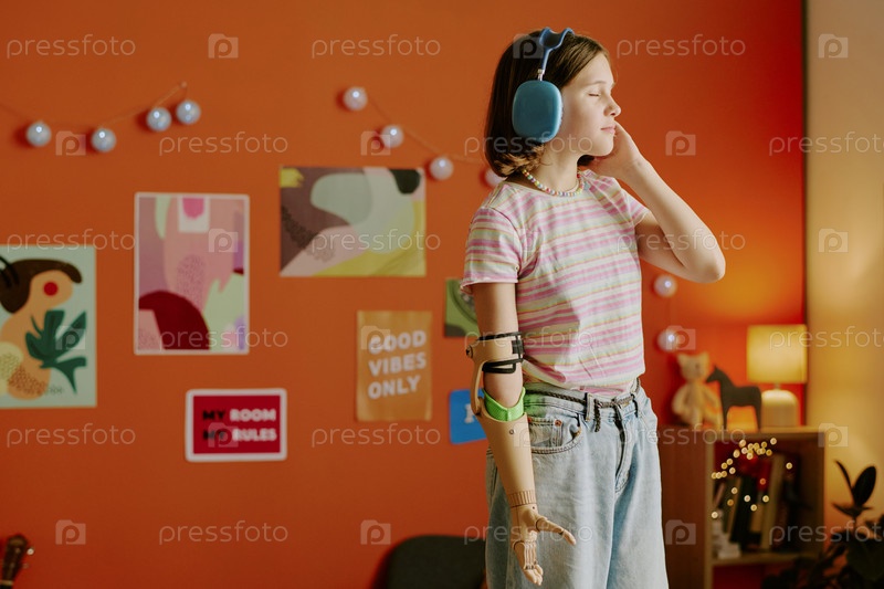 Молодая девушка слушает музыку на наушниках