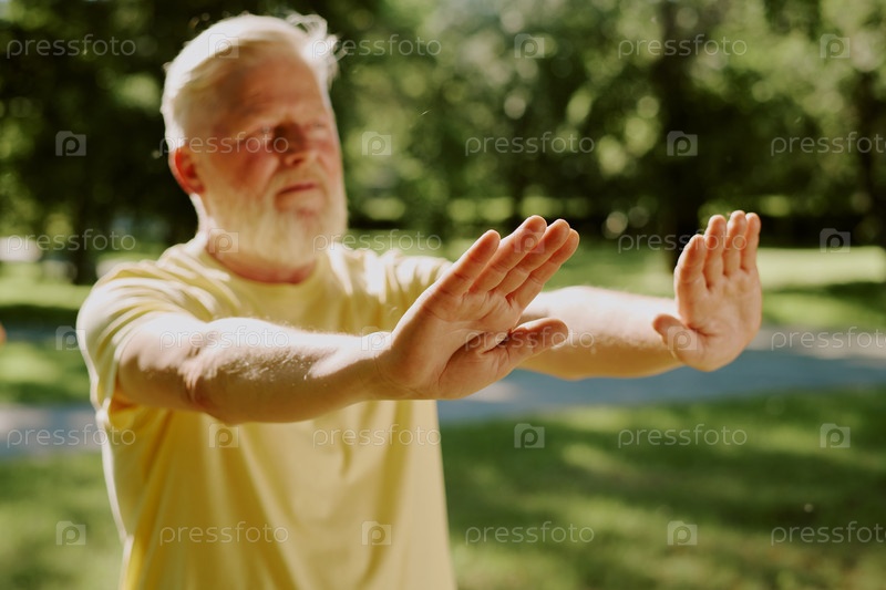 Старший человек Руки в воздухе