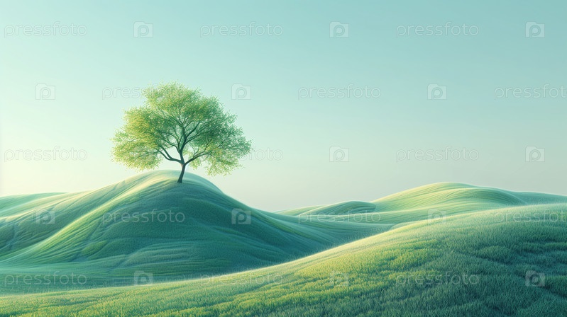 Одинокое дерево, стоящее на красивых Rolling Hills