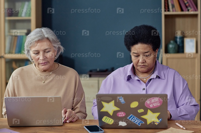 Две зрелые женщины, использующие ноутбуки