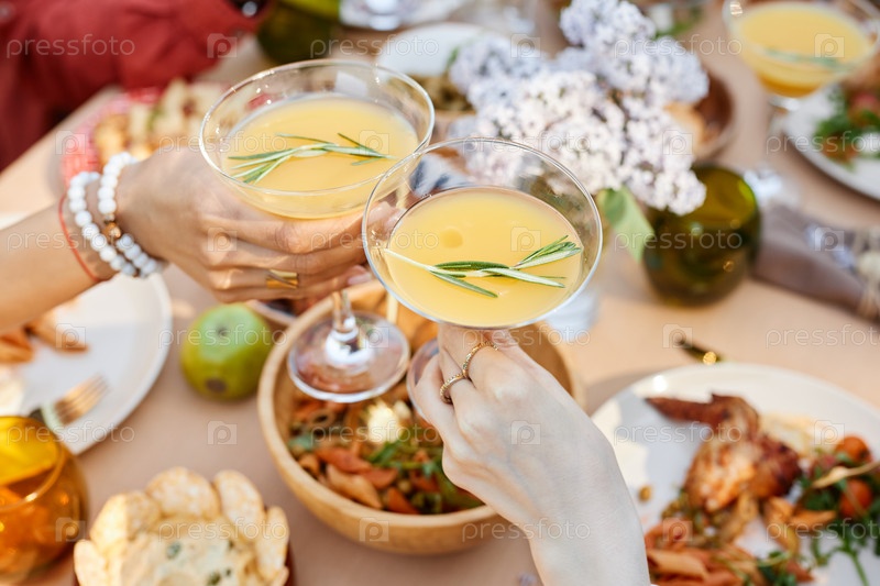 Клинкинговые очки празднуют элегантную обстановку бранча