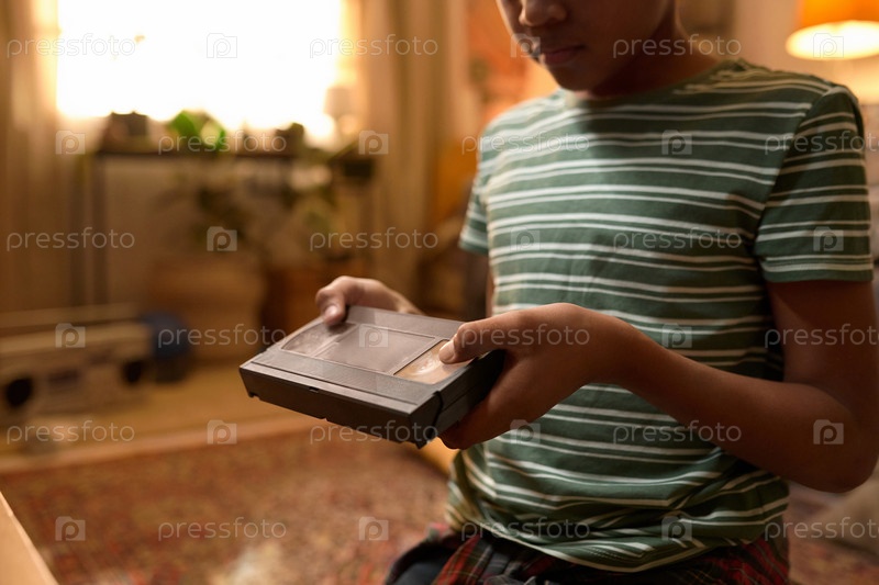 Непризнанный афроамериканский ребенок, держащий VHS-ленту