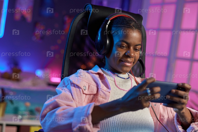Подростковая девушка играет в мобильные игры