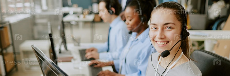 Баннер сайта колл-центра с его работниками
