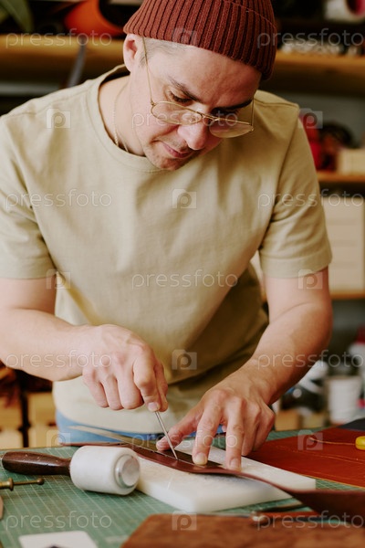 Сосредоточенный на создании кожаной одежды