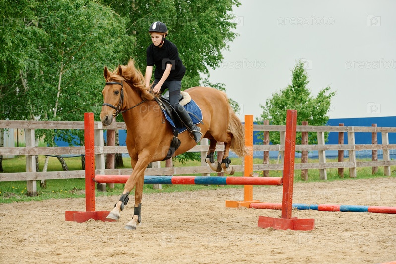 Прыжки с препятствий на конной тренировочной площадке