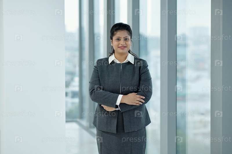 Улыбающаяся деловая женщина, стоящая в офисе