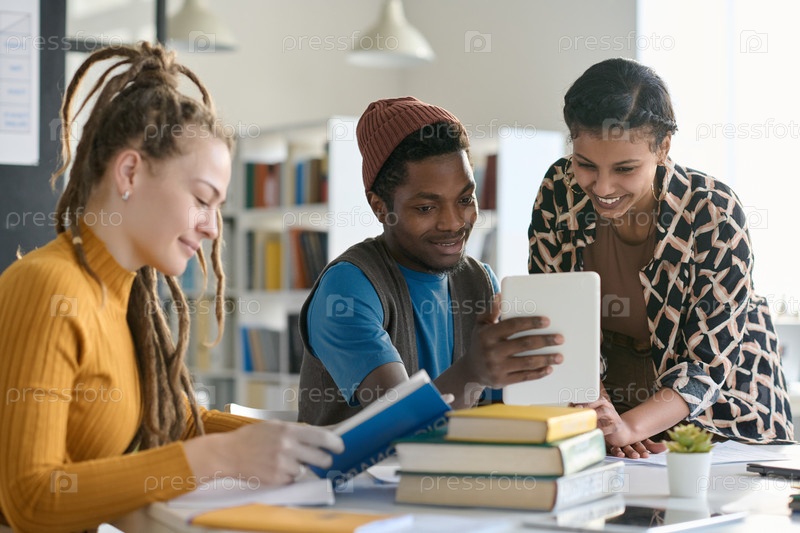 Студенты смотрят видео на цифровом планшете