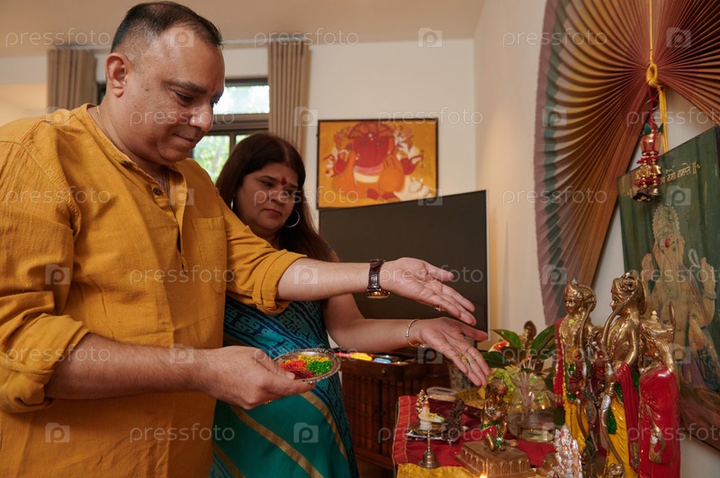 Индийская пара делает жертвоприношения на алтаре