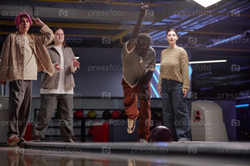 Подростки наслаждаются боулингом в рекреационном комплексе