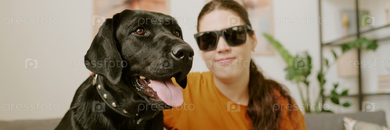 Черный лабрадор и его хозяйка