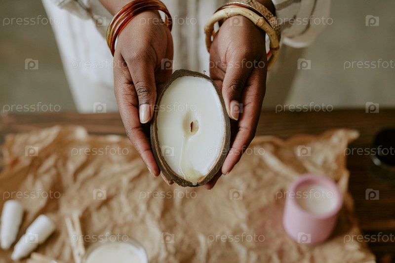 Ручная свеча в контейнере с кокосовой раковиной