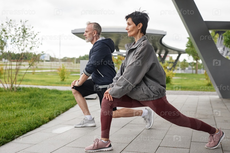 Пожилая пара, занимающаяся с партнером, выполняет упражнения в Винди-парке