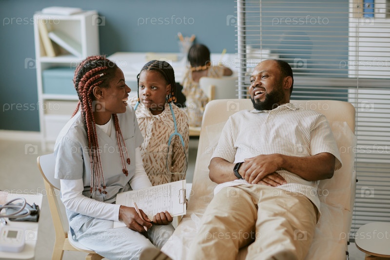 Консультативный врач обсуждает с пациентом в медицинской клинике