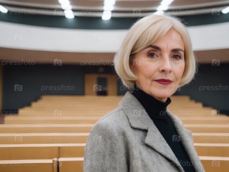 Портрет зрелой женщины в современном конференц-зале