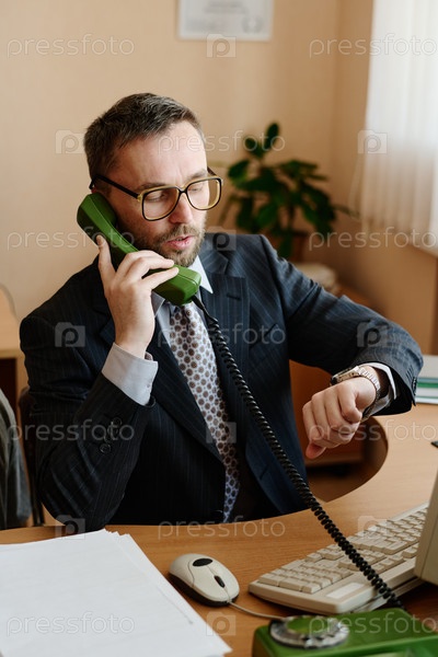Портрет бизнесмена, разговаривающего по офисному телефону